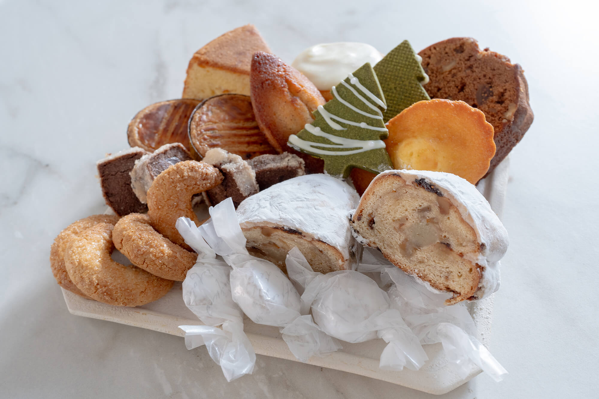 クリスマスまで日持ちする、焼き菓子を詰めたボックスの販売予約です。